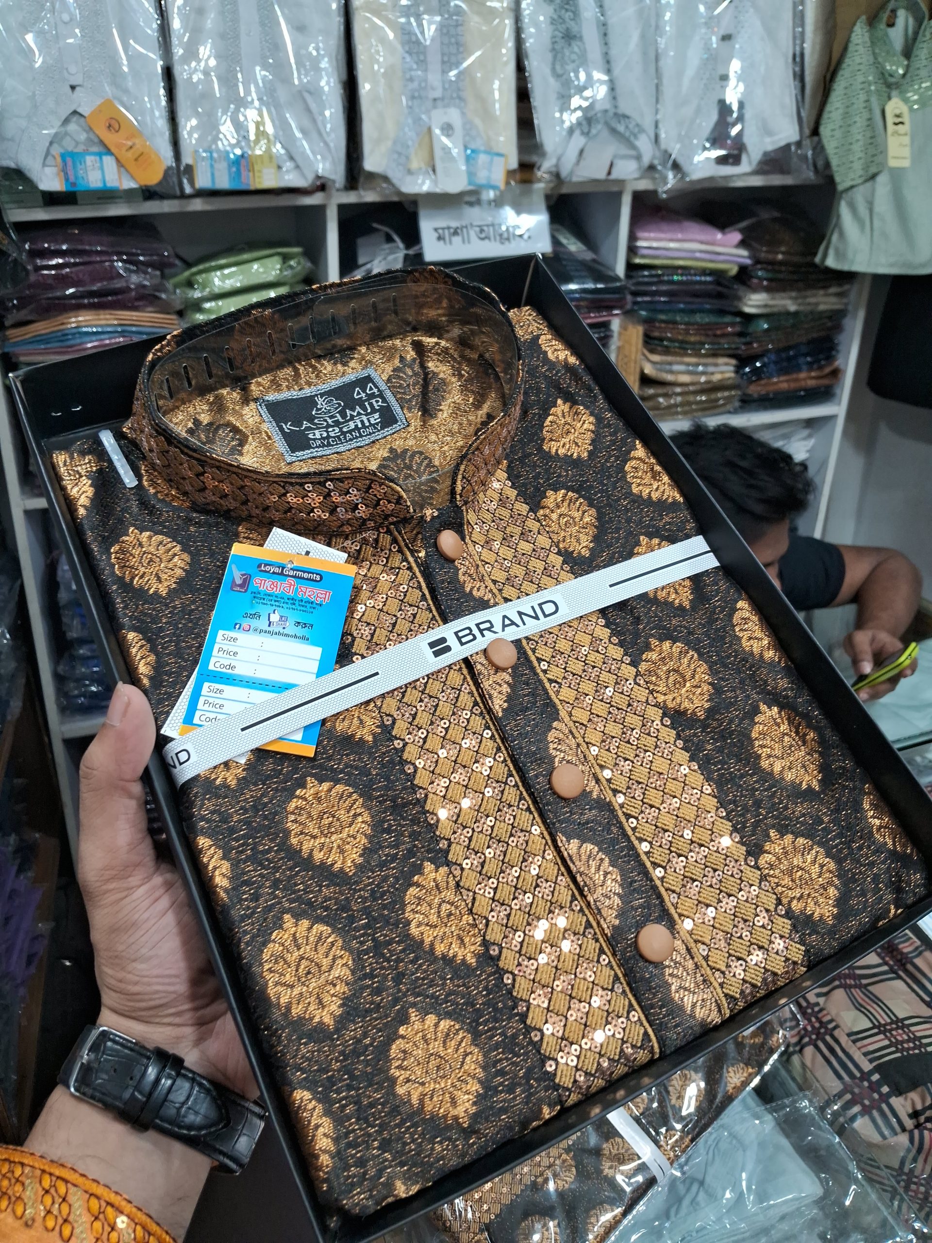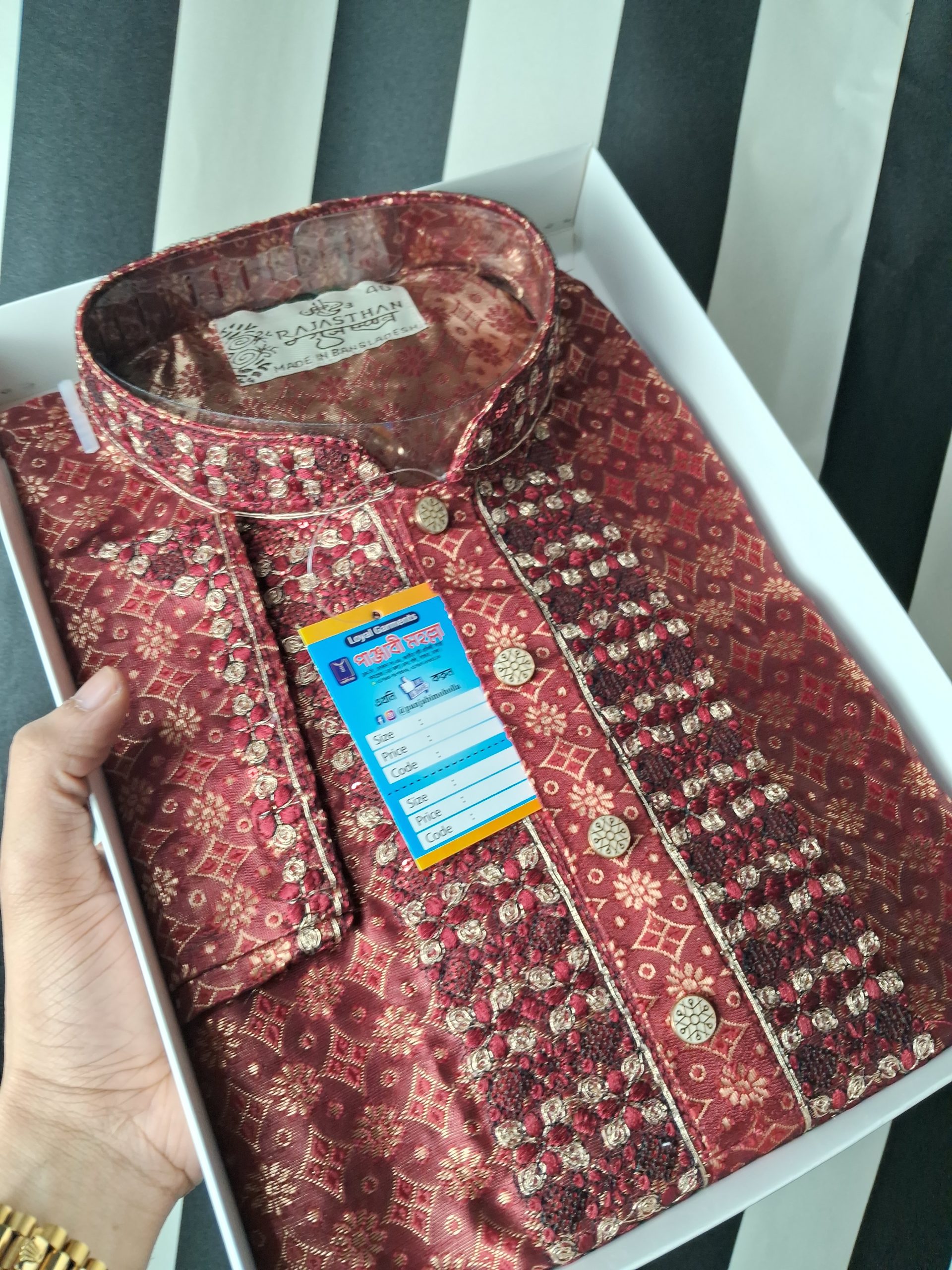 VIP কাতান পার্টি পাঞ্জাবি ১১৯৯৳ ব্লাকিশ ব্রাউন গোল্ড! VIP Katan Party Panjabi Blackish Brown Gold