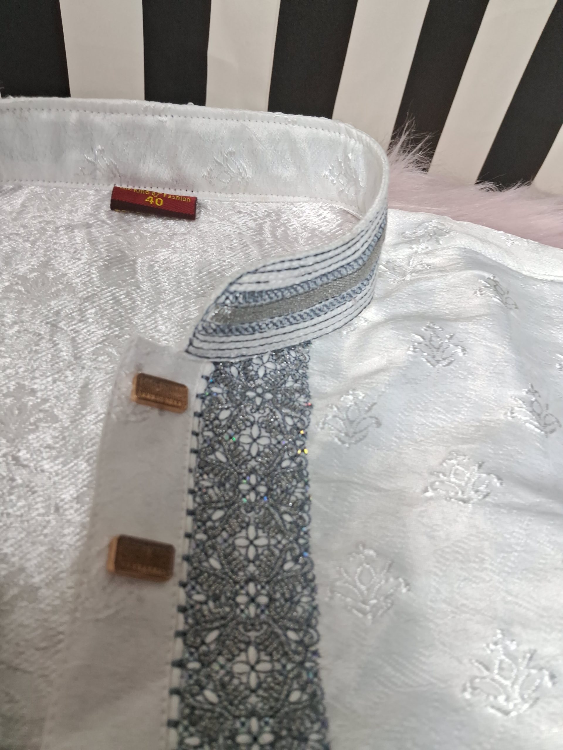 ভিতরে সফ্ট সাদা কাপড় দিয়ে এমব্রডারি কাজ গুলো ফিনিশিং করে দেওয়া আছে। চুলকানোর ভয় নেই, পড়তে আরামদায়ক হবে